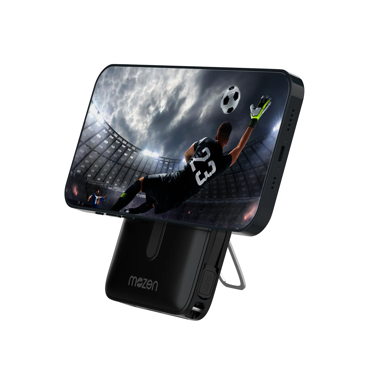 Mozen by Amkette Surge Air X1 10000mAh Power Bank | MagSafe Power Bank | 22.5W USB-C Input / Output + 18W USB-A | 15W Qi Wireless for Android & 7.5W iPhone 12 & above | Metal Stand & Smart Display